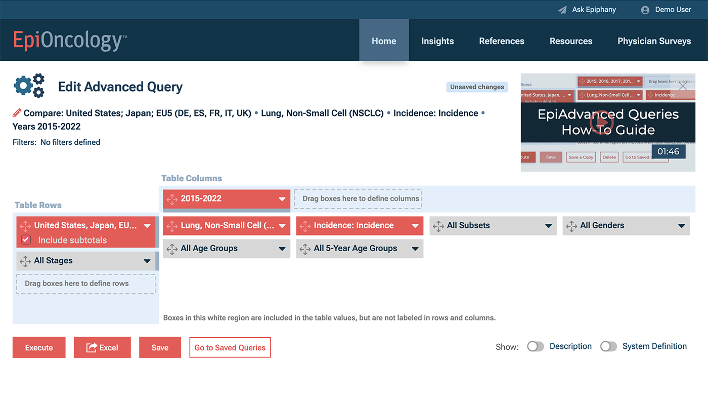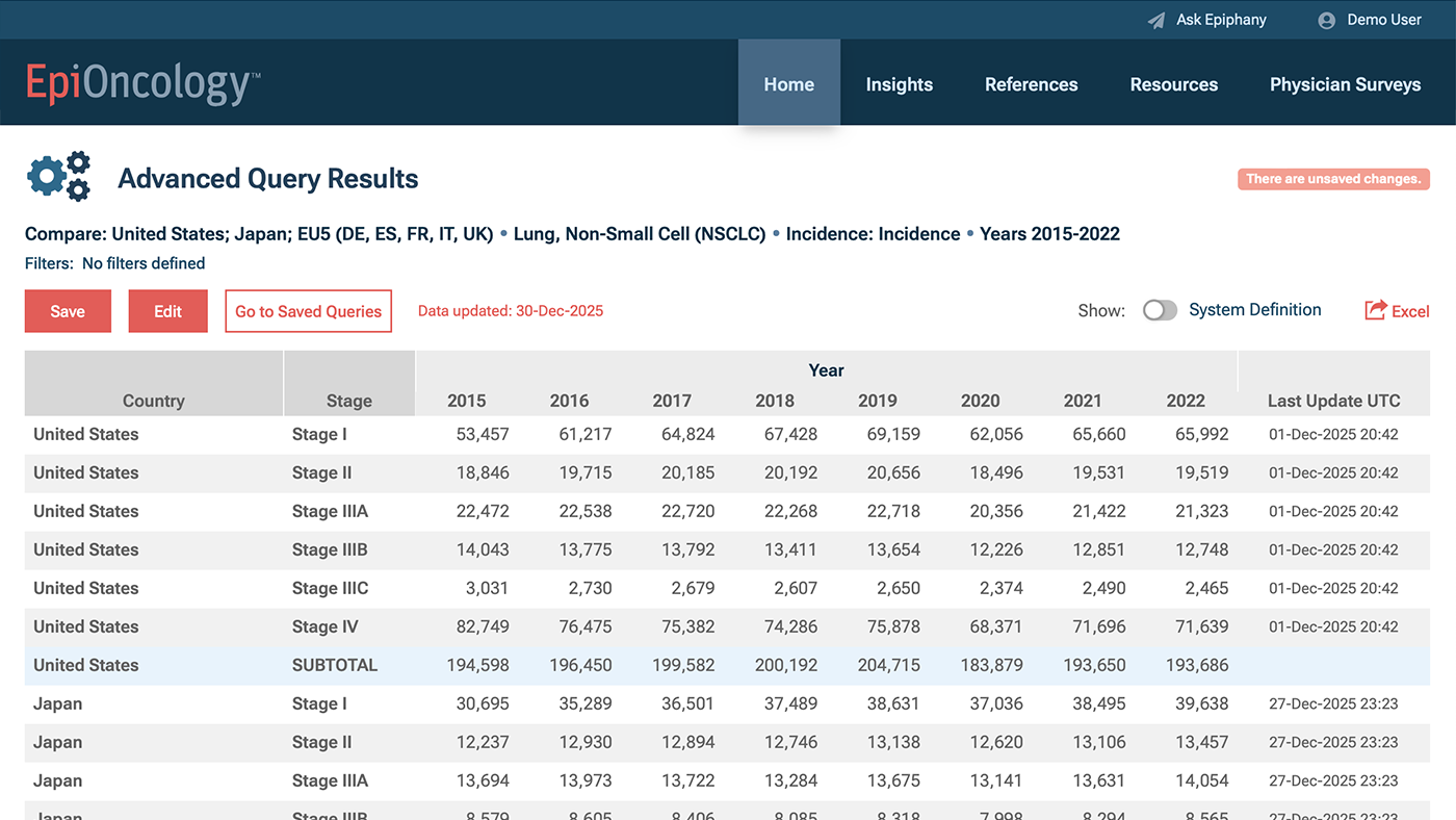 ‘Slice’ the data down as granularly as you want. Need the Third-Course treatment for juvenile esophageal cancer in South America from 2010-2012? One EpiAdvanced Query will tell you the exact results.