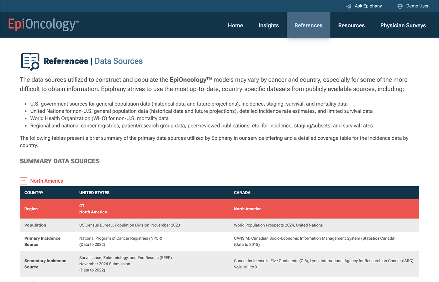 Want to learn more about the data? Our References Section helps users understand the foundation of Epiphany’s data. Highlights include:
